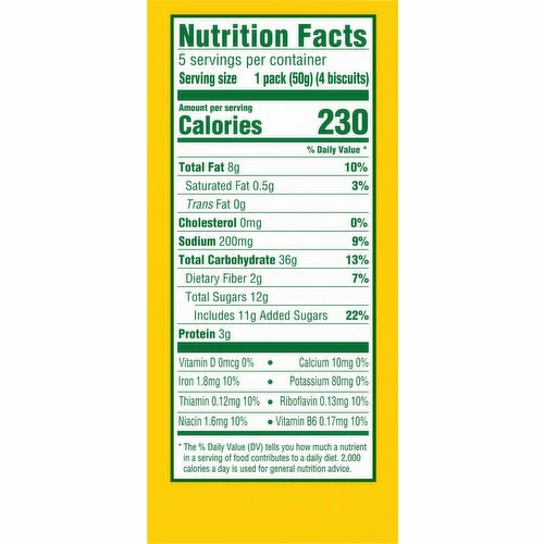 Start your morning off right with lightly sweet and crunchy belVita Blueberry Breakfast Biscuits. These bulk breakfast biscuits combine wholesome grains with fruity blueberry flavor for a delicious breakfast. Specially baked, these baked biscuits contain slow-release carbs that break down gradually in the body to deliver delicious, steady energy all morning long so you can enjoy these with your morning coffee, yogurt and fruit or as an instant breakfast food no matter what the morning brings. Each 50 gram serving of these bulk breakfast cookies contains 18 grams of whole grain, 2 grams of fiber and B vitamins for a delicious alternative to breakfast bars. A simple addition to your morning, these cholesterol-free bulk biscuits for breakfast contain no high-fructose corn syrup and no artificial colors, flavors or sweeteners. What are you waiting for? These convenient breakfast biscuits made with wholesome grains are a great alternative to traditional breakfast snacks. This bulk breakfast food is also an energizing alternative to snack bars and a wholesome addition to college care packages. Each individual pack contains four belVita Blueberry Breakfast Biscuits for you to enjoy on the go, at the office or at home for lasting morning energy.