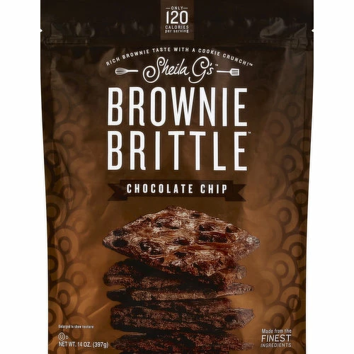 Rich brownie taste with a cookie crunch. Only 120 calories per serving. Made from the finest ingredients. A chocolate indulgence you can feel good about. It all began when Sheila G, a passionate chocolate-loving baker, took a treasured family recipe for fudge brownies and baked her way into a thriving business. You may have tasted one of her rich, dense squares of heaven at some of our nation’s finest restaurants and theme parks. Like many brownie aficionados, Sheila is particularly fond of the crispy edges. In fact, she took great joy in walking through the bakery, gathering the brittle batter off the sides of the sheet pans as the brownies cooled in their racks. And that is where Sheila found her inspiration for Brownie Brittle – a thin, award-winning treat with a rich brownie taste, an amazing cookie crunch and only 120 calories per serving. Deliciously versatile, Sheila G’s Brownie Brittle is great right out of the bag, as well as crumbled over ice cream, yogurt, cereal, and more. Like the crispy edge of a gourmet brownie, Sheila G’s Brownie Brittle satisfies your chocolate desires with fewer calories than other sweet snacks. So, crave away with these rich pieces of chocolate decadence you can feel good about. Enjoy! XO, Sheila G. Facebook; Twitter; Pinterest; Instagram at browniebrittle. browniebrittle.com. 1-800-Brownie (1-800-276-9643). Proud supporter of Cookies for Kids’ Cancer. Made in the USA.