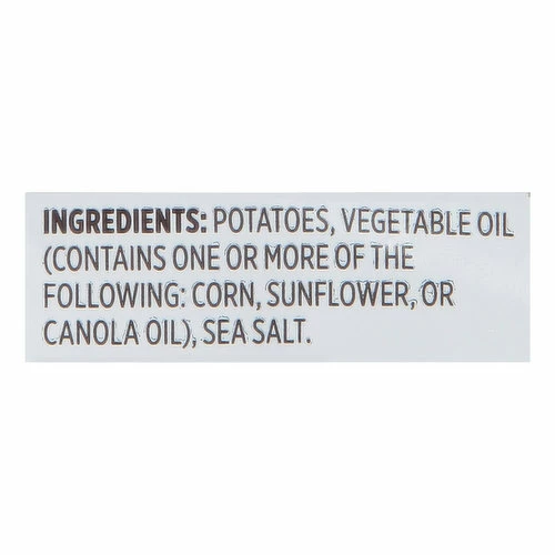 Potatoes, Vegetable Oil (Contains One or More of the Following: Corn, Sunflower, or Canola Oil), Sea Salt.