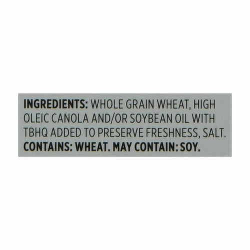 Whole Grain Wheat, High Oleic Canola and/or Soybean Oil with TBHQ Added to Preserve Freshness, Salt.