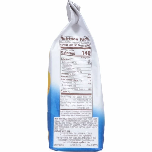 Made with Smiles and Enriched Wheat Flour (Flour, Niacin, Reduced Iron, Thiamine Mononitrate, Riboflavin, Folic Acid), Vegetable Oils (Canola, Sunflower and/or Soybean), Salt, Contains 2% or Less of Nonfat Milk, Yeast, Sugar, Baking Soda, Monocalcium Phosphate, Paprika, Spices, Celery, Onion Powder.