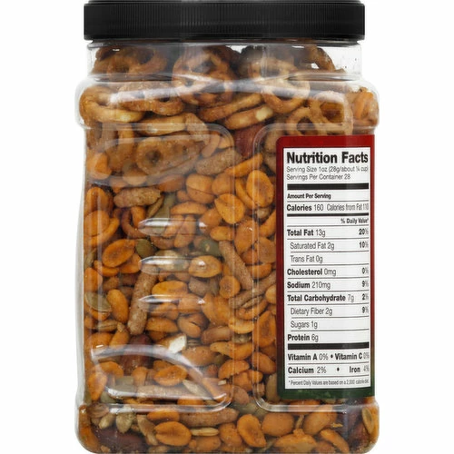 Peanuts (Roasted in Peanut and/or Cottonseed and/or Sunflower Seed and/or Canola Oil, Salt), Sesame Sticks (Unbleached Wheat Flour, Soybean Oil, Sesame Seeds, Bulgur Wheat, Salt, Beet Powder and Turmeric For Color), Pretzels (Enriched Wheat Flour [with Niacin, Reduced Iron, Thiamin Mononitrate, Riboflavin, Folic Acid], Salt, Vegetable Oil, Corn Syrup, Baking Soda, Yeast), Pepitas and Almonds (Roasted in Peanut and/or Cottonseed and/or Sunflower Seed and/or Canola Oil, Salt), Spices.