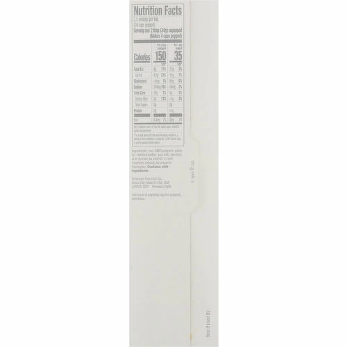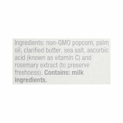 Non-GMO Popcorn, Palm Oil, Clarified Butter, Sea Salt, Ascorbic Acid (Known as Vitamin C) and Rosemary Extract (to Preserve Freshness).