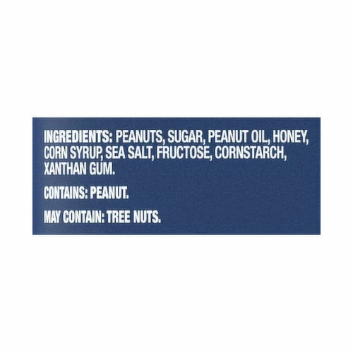 Peanuts, Sugar, Peanut Oil, Honey, Corn Syrup, Sea Salt, Fructose, Cornstarch, Xanthan Gum.