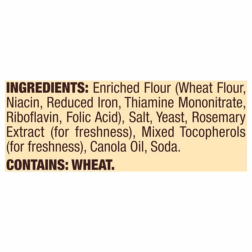 Enriched Flour (Wheat Flour, Niacin, Reduced Iron, Thiamine Mononitrate, Riboflavin, Folic Acid), Salt, Yeast, Rosemary Extract (for Freshness), Mixed Tocopherols (for Freshness), Canola Oil, Soda.