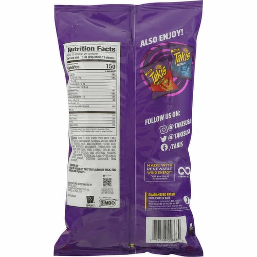 New look same intensity. Made with renewable wind energy (Visit www.takis-us for more details). Terracycle. Dispose of properly.
