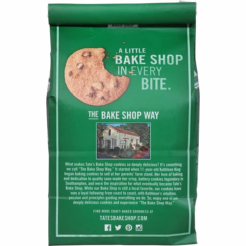 Uniquely crispy. Deeply delicious. Founded approved. Created by: Kathleen King. Craft baked. Texture: Crispy thin scrumptious. Signature thin crispy cookies combining the best of ingredients and a passion for baking. A little bake shop in every bite. The Bake Shop Way: What makes Tate’s Bake Shop cookies so deeply delicious? It’s something we call ‘The Bake Shop Way’. It started when 11-year-old Kathleen King began baking cookies to sell at her parent’s farm stand. Her love of baking and dedication to quality made her crisp, buttery cookies legendary in Southampton, and were the inspiration for what eventually became Tate’s Bake Shop. While our bake shop is still a local favorite, our cookies have won a loyal following from coast to coast, with Kathleen’s intuition, passion and principles guiding everything we do. So, enjoy one of our deeply delicious cookies and experience ‘The Bake Shop Way’.