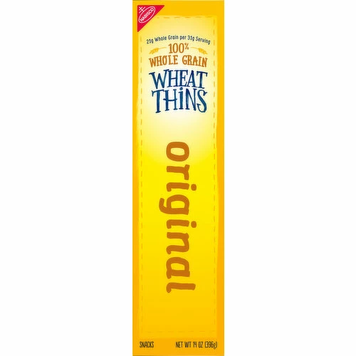 There’s nothing like the satisfying crunch of original Wheat Thins. These wheat crackers get their salty-sweet flavor from 100% whole grain wheat for a snack that’s wholesome and delicious. Wheat Thins whole grain crackers have the crunchy texture and salty taste you love without artificial colors or flavors. Each serving of these cracker snacks has 21 grams of whole grains, with no cholesterol or high fructose corn syrup, making these crackers ideal whole grain snacks for kids and adults. Pair these snack crackers with cheese, fruit or spreads, or enjoy them all on their own. They’re great party snacks, and they’re perfect for creating stacks of cheese and crackers you can enjoy at home or work. Set these thin snacks out at gatherings and holiday parties for a crowd-pleasing snack. Each family size box is sealed for freshness.
